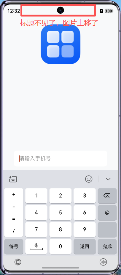 页面分为三个部分,顶部固定标题,中间是logo图标,底部是输入框。用户点击底部输入框时,页面弹出软键盘,顶部固定标题没有固定住,整体往上移动。