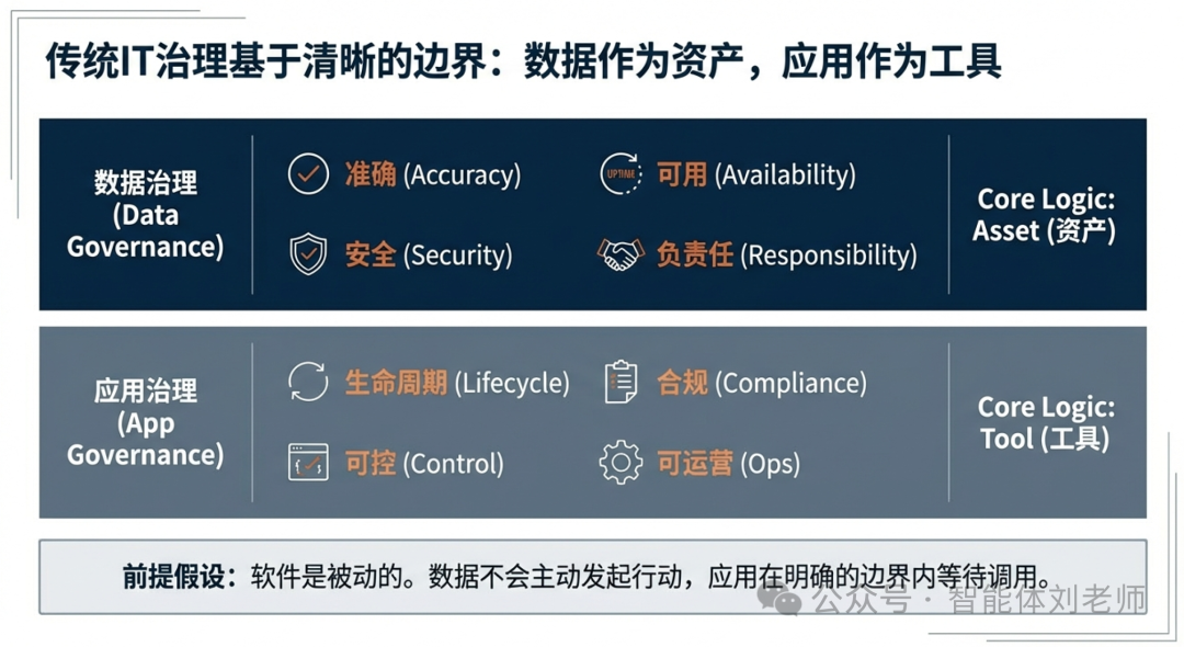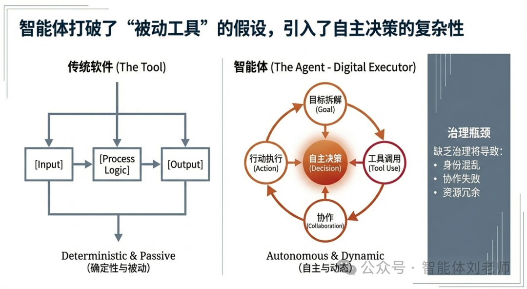 在传统的信息系统治理里,"数据"与"应用"虽然复杂,但其行为边界相对清晰:数据不会主动发起行动,应用也通常在明确的调用链路和权限边界内执行。