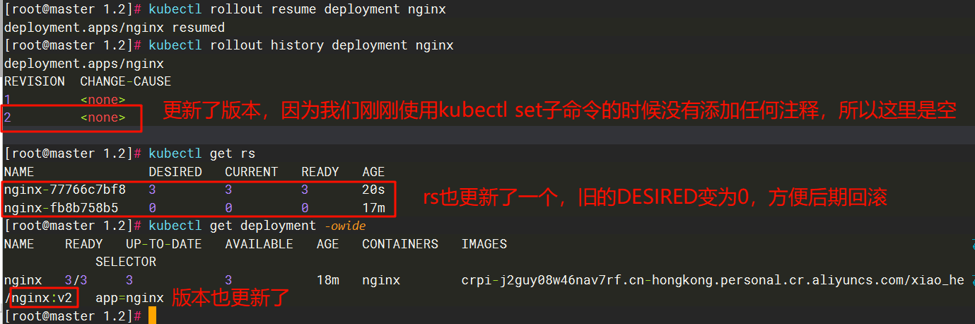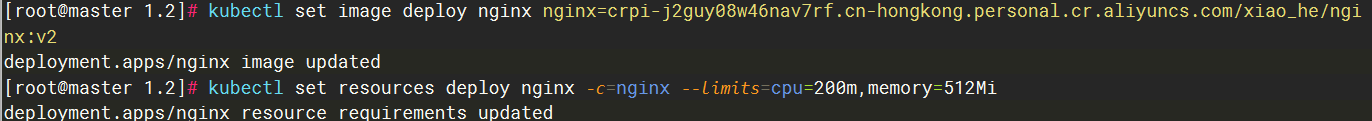 [root@master 1.2]# kubectl set image deploy nginx nginx=crpi-j2guy08w46nav7rf.cn-hongkong.personal.cr.aliyuncs.com/xiao_he/nginx:v2