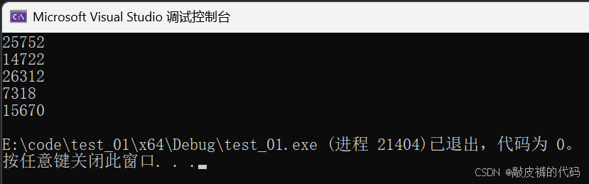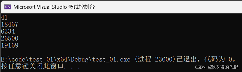 那我们就测试一下rand函数,这里多调用几次,产生5个随机数:
