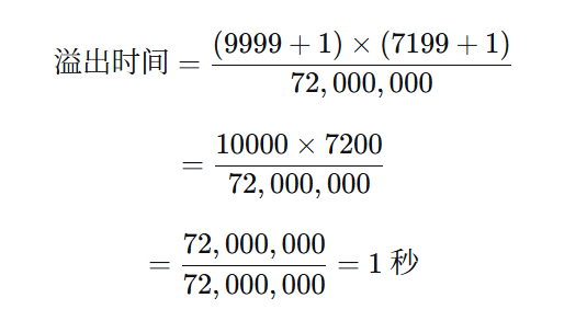 溢出时间 T = (64 × 2000) / 40000 = 128000 / 40000 = 3.2秒