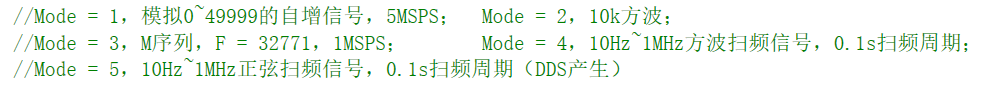 Mode = 5: 正弦波线性扫频(DDS产生,10Hz ~ 1MHz)。