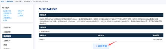 去官方网站https://www.wch.cn/downloads/CH341PAR_EXE.html,下载CH347芯片的驱动程序"CH341PAR.EXE"。