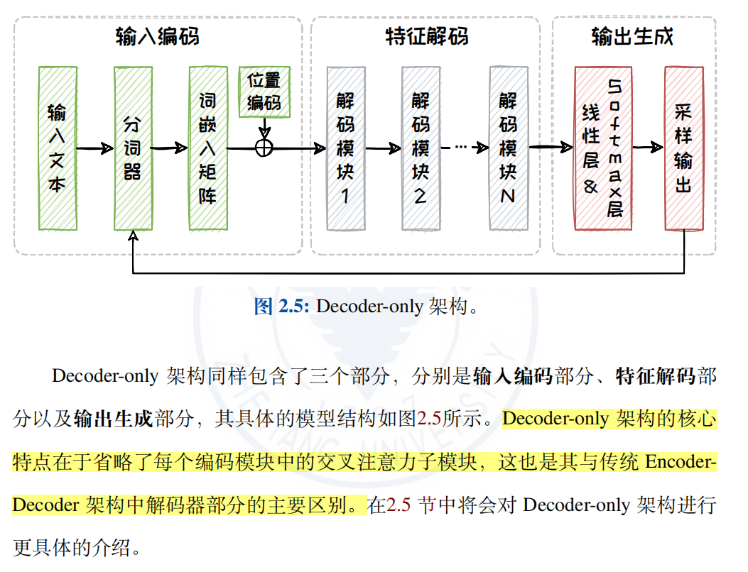 从第三代开始,GPT 系列逐渐走向了闭源。而 LLaMA 系列虽然起步较晚,但凭借着同样出色的性能以及始终坚持的开源道路,也在 Decoder-only 架构领域占据了一席之地。接下来将对这两种系列的模型进行介绍