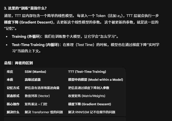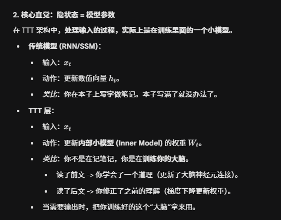 - 近年来,研究者提出了两类现代 RNN 变体,分别为状态空间模型(State Space Model,SSM)和测试时训练(Test-Time Training,TTT)。这两种范式都可以实现关于序列长度的线性时间复杂度,且避免了传统 RNN 中存在的问题。