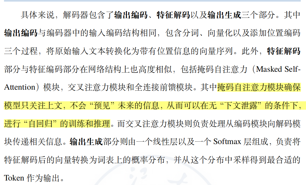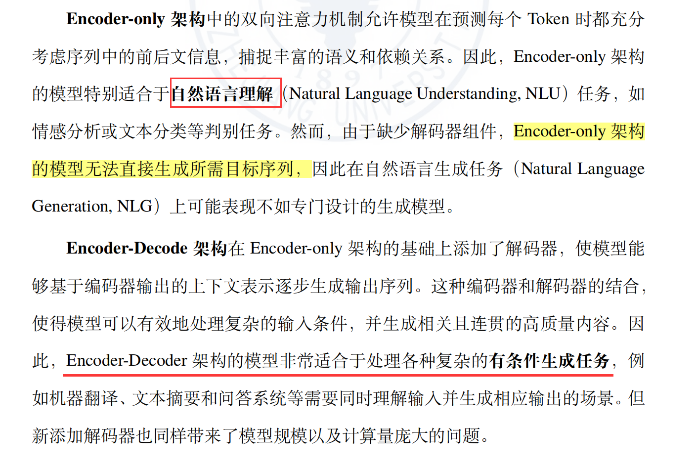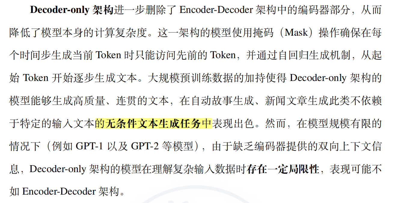 - 在编码器中,我们需要对输入序列的上下文进行"通盘考虑",所以采用双向注意力机制以全面捕捉上下文信息。但在解码器中,自注意力机制则是单向的,仅以上文为条件来解码得到下文,通过掩码操作避免解码器"窥视"未来的信息。