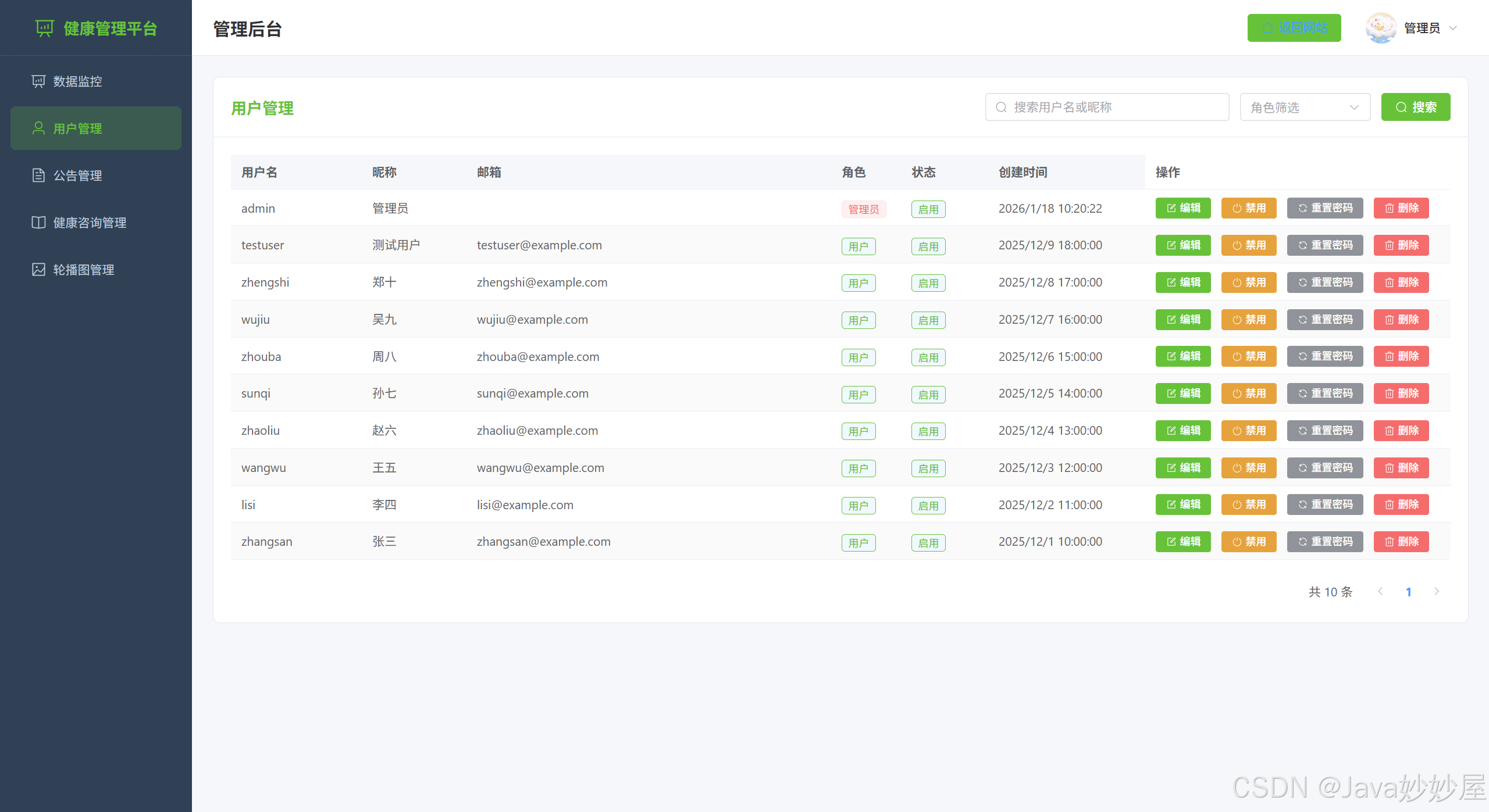 用户管理(支持禁用用户、重置密码功能)