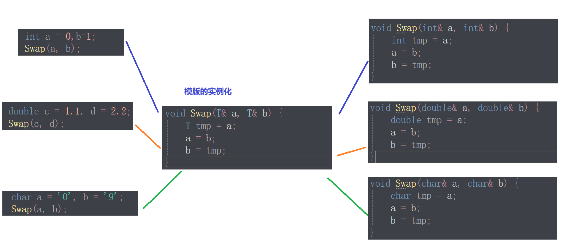 Add<int, double>(a, b);//显示实例化的时候按顺序给类型就可以了