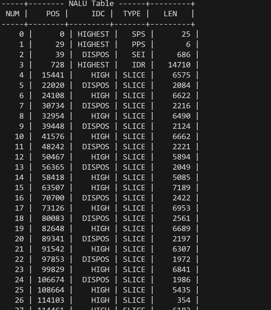 void printNALUInfo(const NALU& n, int num, size_t pos) {