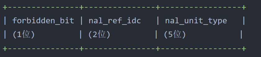 forbidden_zero_bit(1 位) :禁止位,固定为 0。若在接收端检测到该位为 1,表示 NALU 可能存在传输错误(如比特翻转),需丢弃该 NALU。