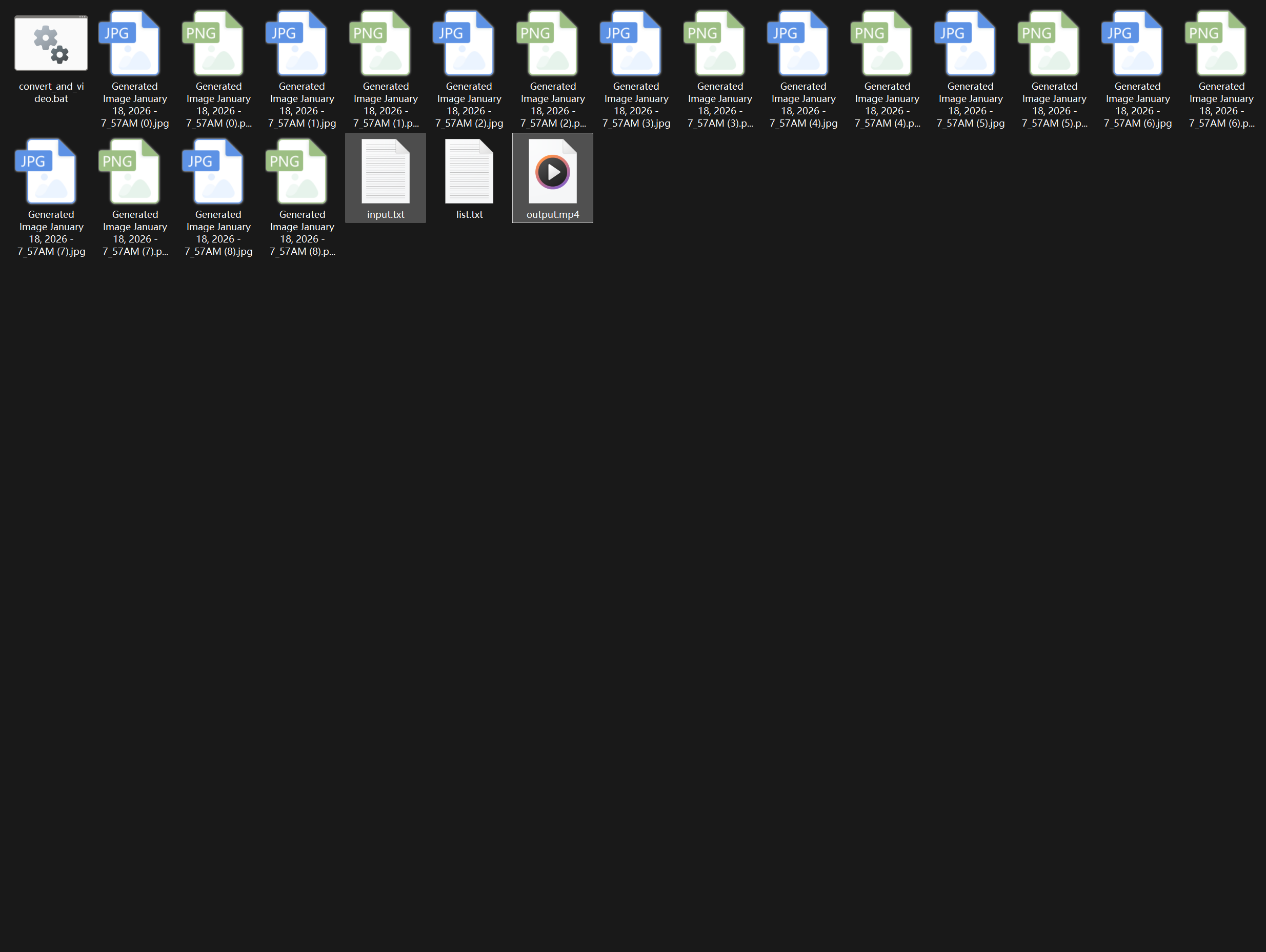 在处理大量生成的图片资产(如 AI 生成的艺术图)时,我们经常需要将它们转化为更易于分享的视频格式。手动操作不仅繁琐,而且难以保证每张图停留时间的精确性。本文将带你深入剖析一个自动化脚本,看看它是如何一键完成"格式转换"与"视频合成"的。