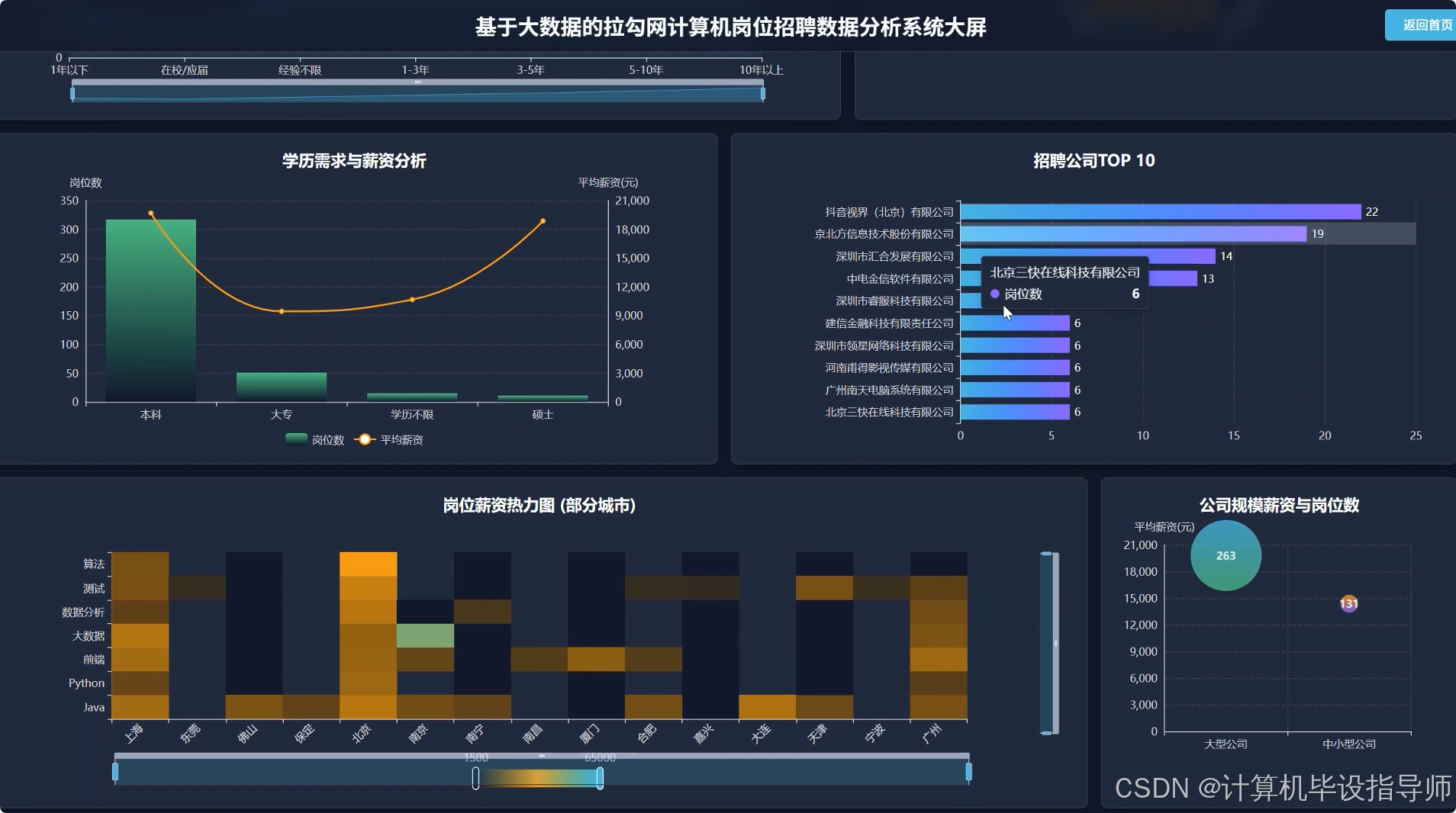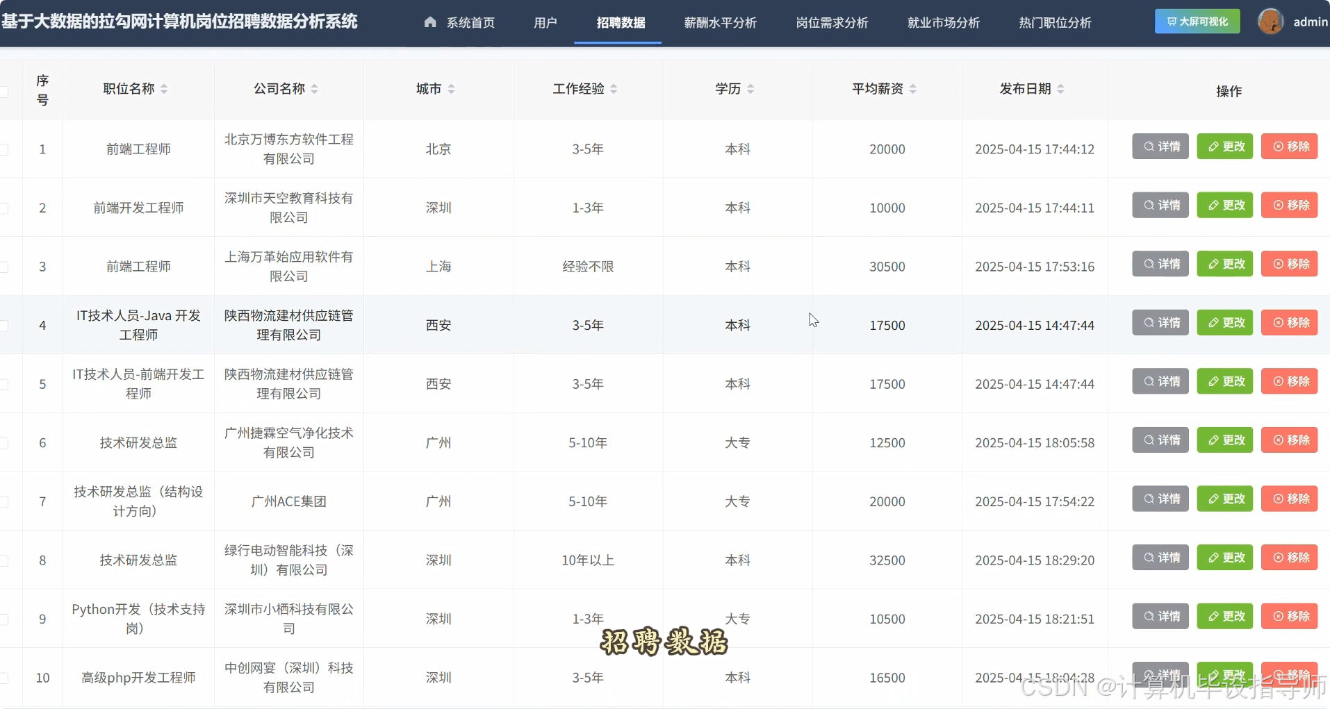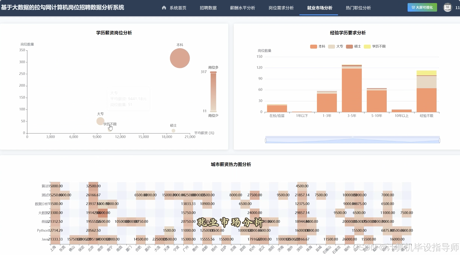 拉勾网计算机岗位招聘数据分析系统-视频展示