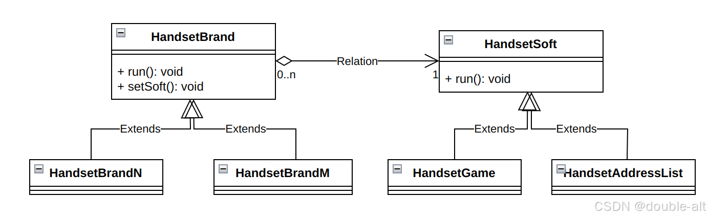 本例中就是让'手机'既可以按照品牌来分类,也可以按照功能来分类。当品牌需要实现功能时,通过调用功能类实现。