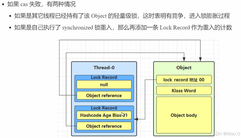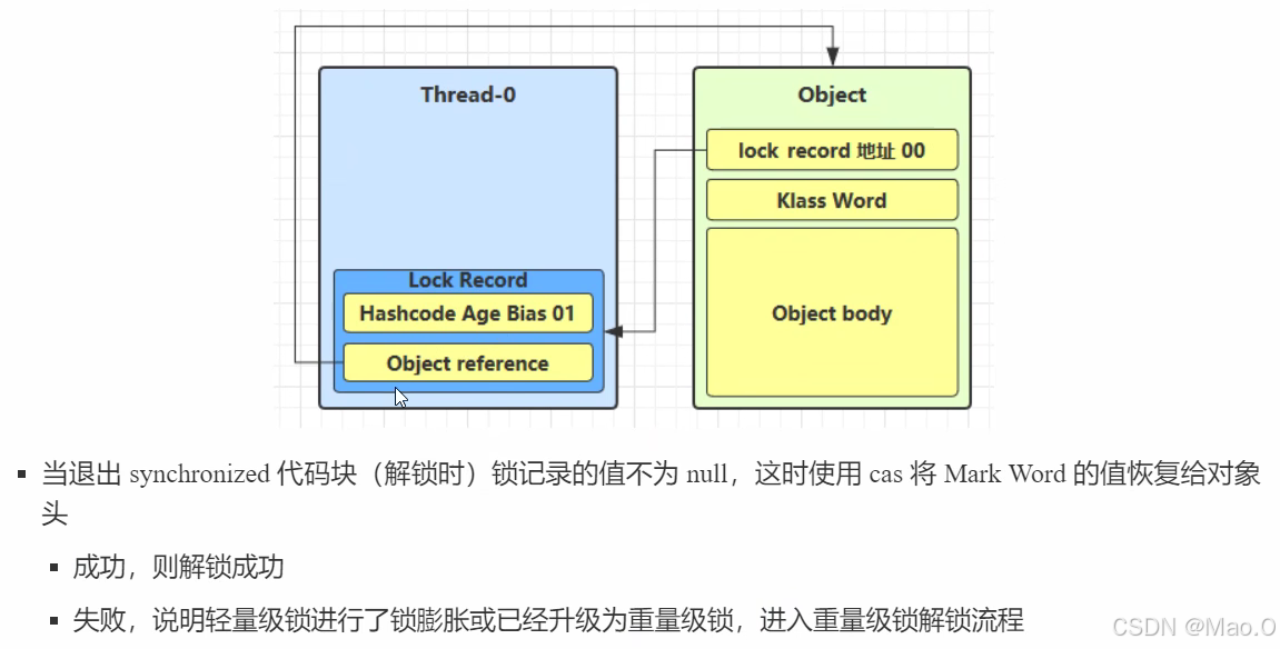 **重点:**在读到sychronized关键字行代码的时候,会复制一份对象原来的引用(含有Hashcode等信息),然后将引用进行更改为Monitor对象的地址,最后执行完逻辑代码后直接返回结束。