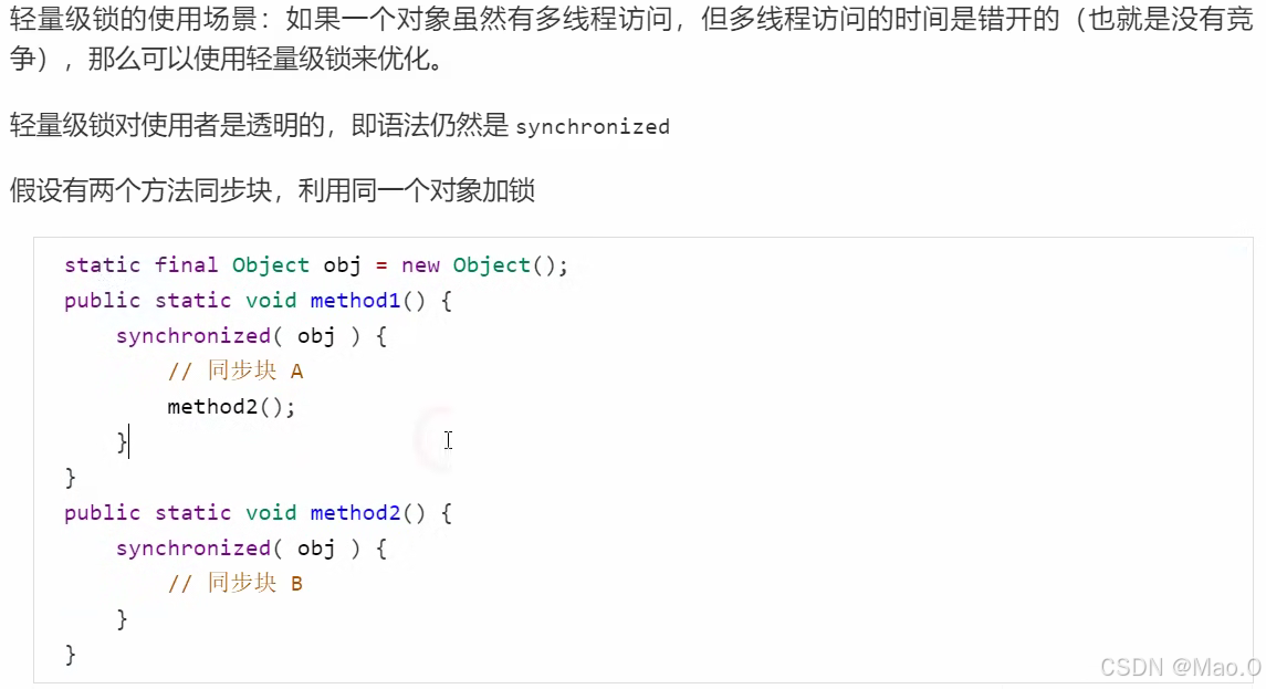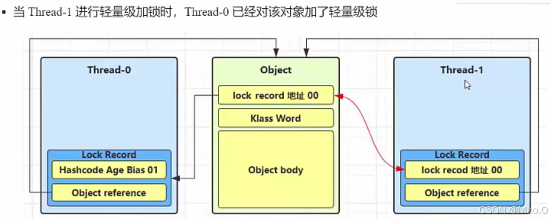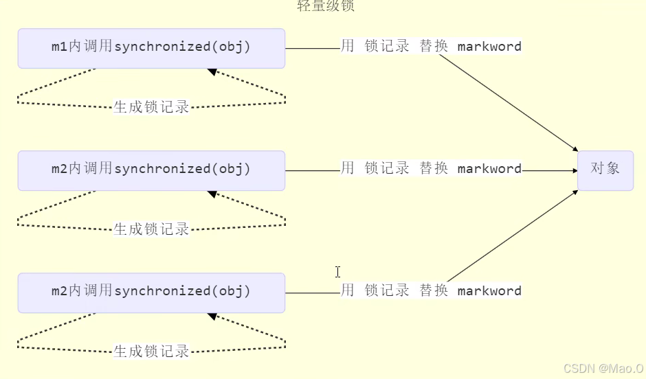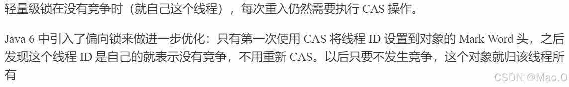 轻量级锁比Monitor锁的效率更高,因为轻量级锁只是用线程栈帧中的锁记录代表锁,不需要而外申请Monitor锁。