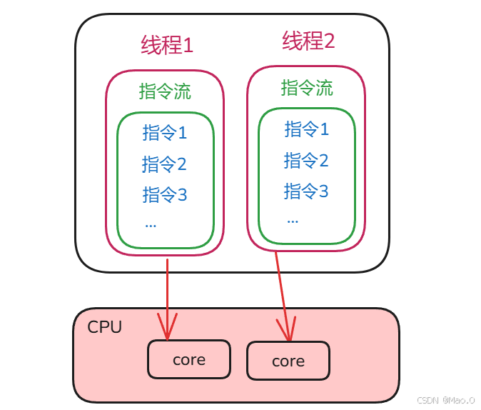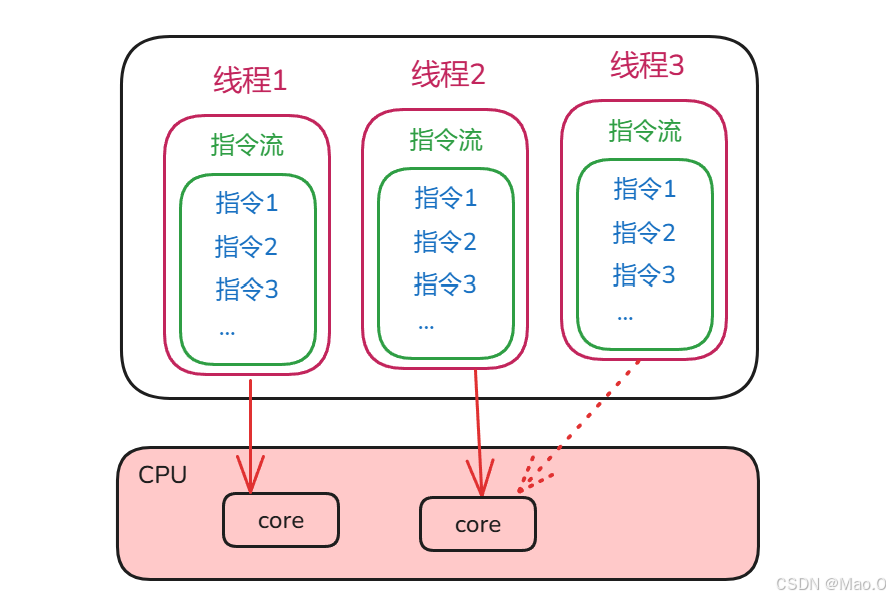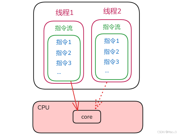一个线程就是一个指令流,线程的作用就是将指令流中的一条条指令交给CPU执行。
