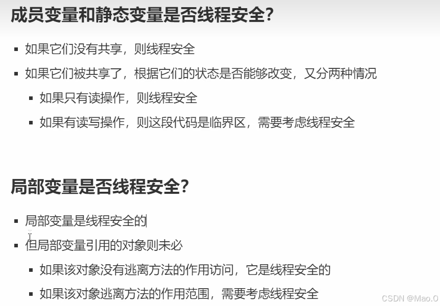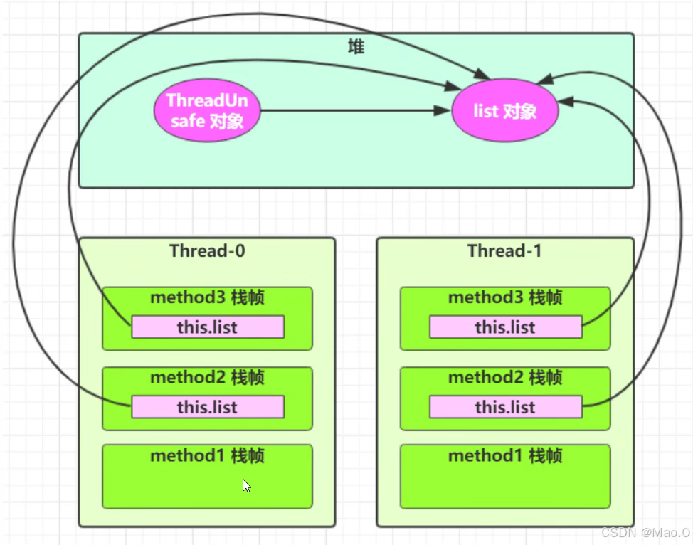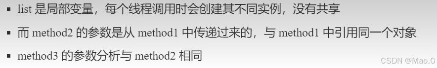 如上会发生线程安全问题,因为即使属性是局部变量,但是【局部变量的引用泄露了】,暴露给了其他方法,在foo方法的实现中,发现使用了new Thread()创建了新线程,会导致多个线程访问同一资源的问题。