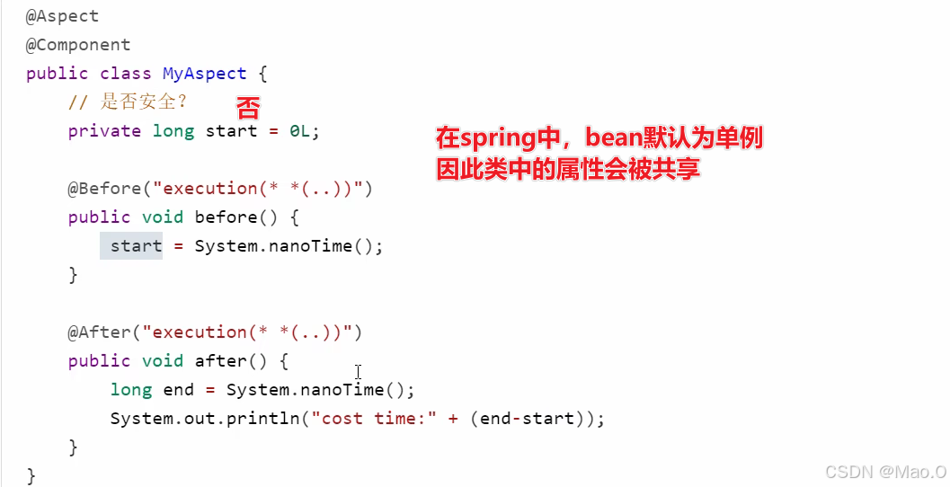 如上的解决方法:使用环绕通知,将共享属性作为局部变量放到方法中。