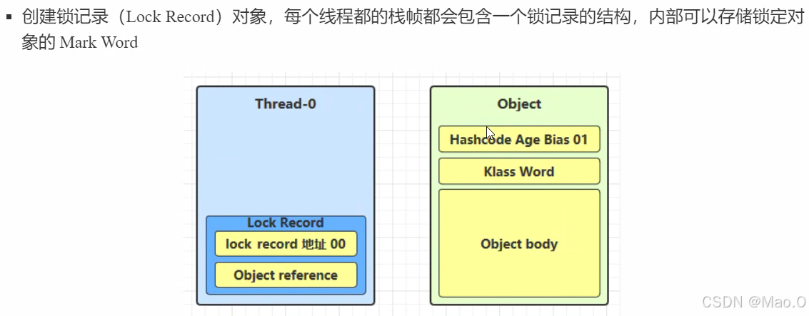 轻量级锁将hash code存储在线程栈帧的锁记录中。