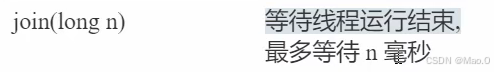 **wait(long n)**有时限的等待,到n毫秒后结束等待,或是被notify