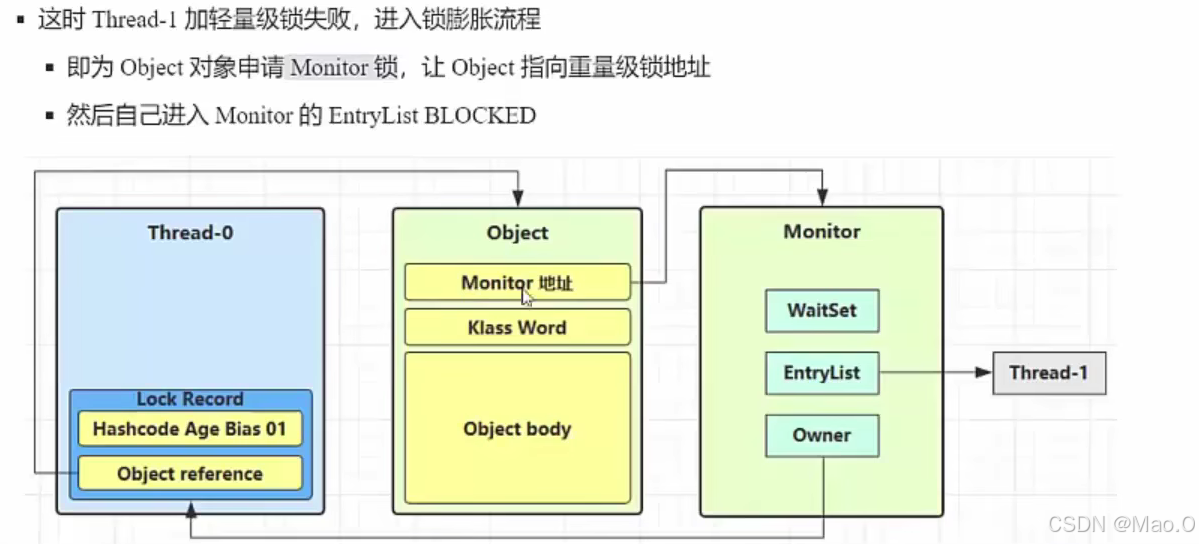 当我们使用sychronized()之后,线程执行到代码就会去检查对象是否绑定monitor: