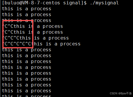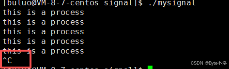 可以看到这次即使我们按下ctrl+c之后,我们的进程忽略掉了该进程,并没有终止该进程。