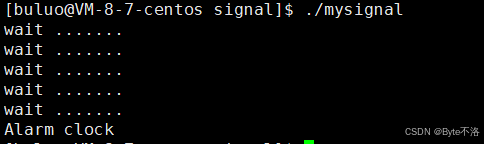 可以看到5s之后,SIGALRM的默认行为就是终止进程,这并不是定时器的正确打开方式,接下来我们就结合上面所学知识,来见证一下闹钟的正确使用方式。