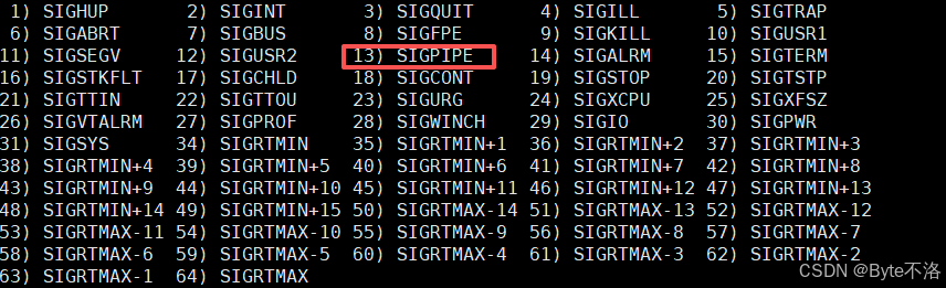- 编号34以上的是实时信号,咱们只讨论编号34以下的普通信号,不讨论实时信号