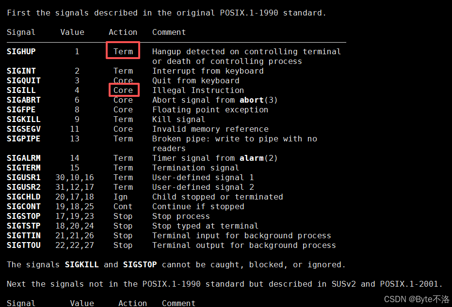 剩下的信号就不一一验证了,总而言之就是在前31号信号中,除了9号信号和19号信号不能被自定义之外,剩下的信号都是可以被自定义的。