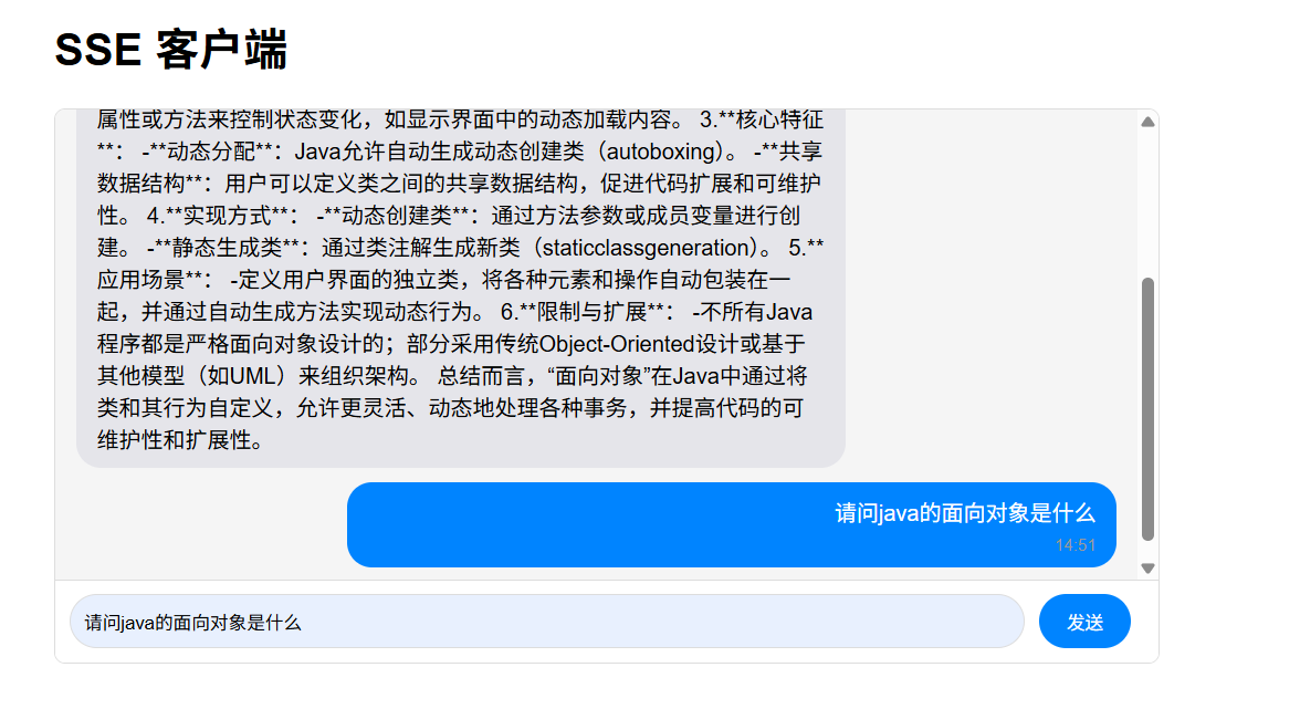 官网主页面默认提供的是完全回答完毕再返回,这种对于用户来说问完一个问题后,无法一个字一个字的回拼,页面是空白的,直到全部回答完才显示,所以才有流式写法。不过流式写法就需要结合SSE进行