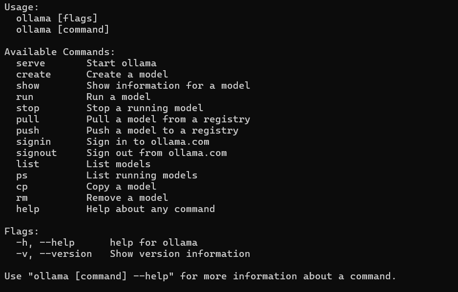 第二部:控制台黑窗口 输入ollama命令,出现如下信息,那就是成功了