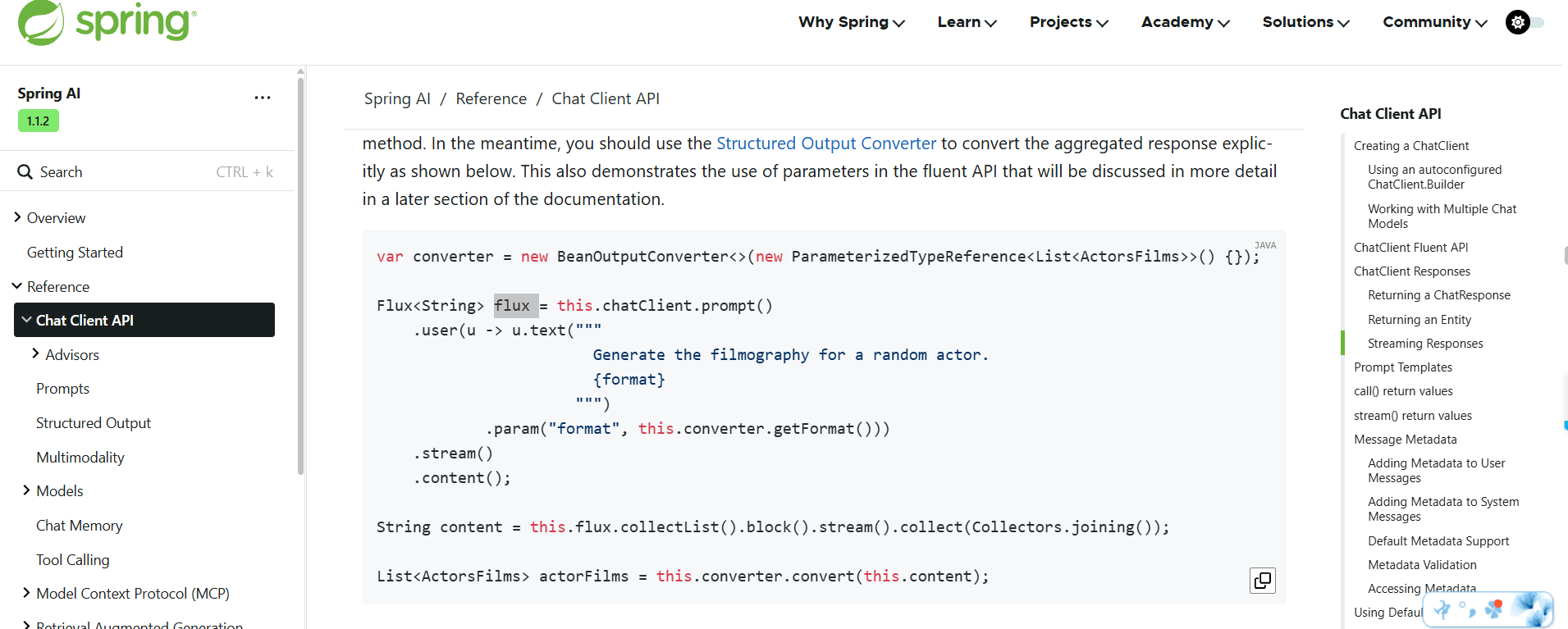 流式官网写法:https://docs.spring.io/spring-ai/reference/api/chatclient.html