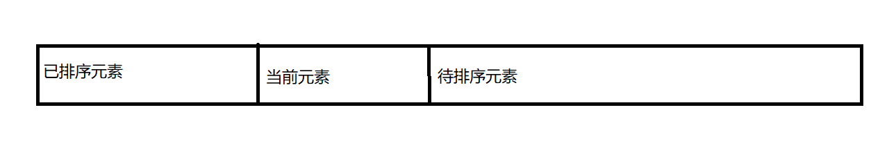 将数组分为三部分:已排序元素,当前元素,待排序元素。从后往前遍历已经排好序的元素,拿当前元素和已经排好序的元素进行比较,如果待排序元素小于已经排序的元素,则让已经排序的元素往后挪动一个位置。直到待排序元素小于当前元素时停止遍历,然后让当前元素插入当前遍历到的待排序元素的后一个位置即可。代码实现如下: