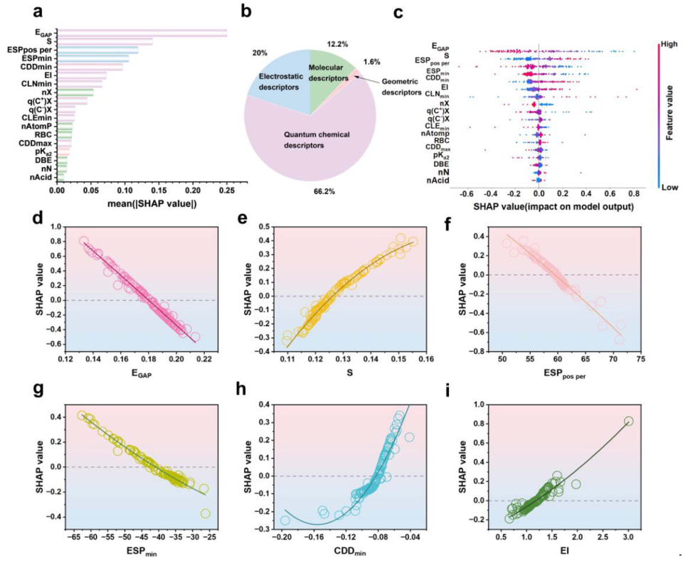 通过 SHAP 分析与部分依赖图(PDP),揭示反应核心影响因子: