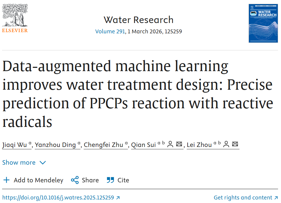 华东理工大学团队在 Water Research 2026 年 291 期发表《 Data-augmented machine learning improves water treatment design: