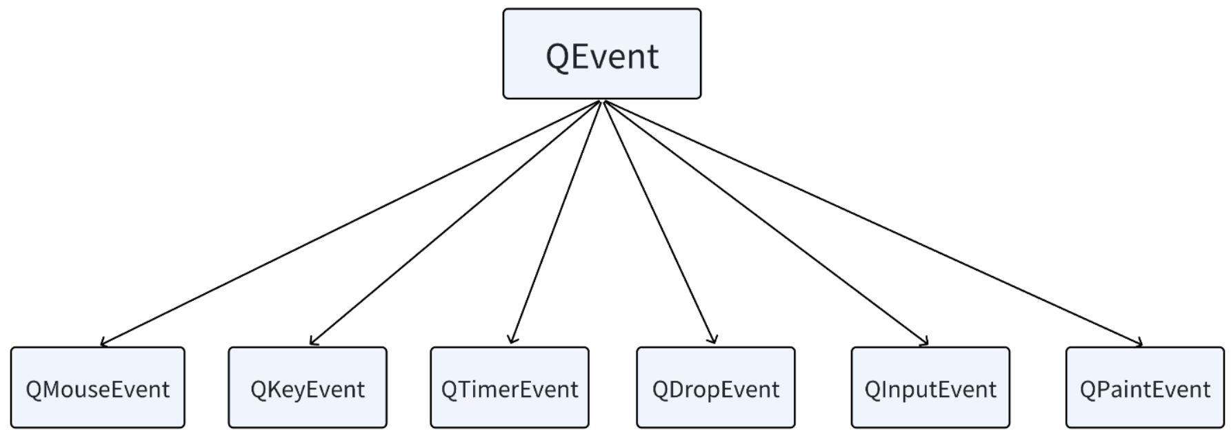 所有的 Qt 事件均继承于抽象类 QEvent。常⻅的 Qt 事件如下: