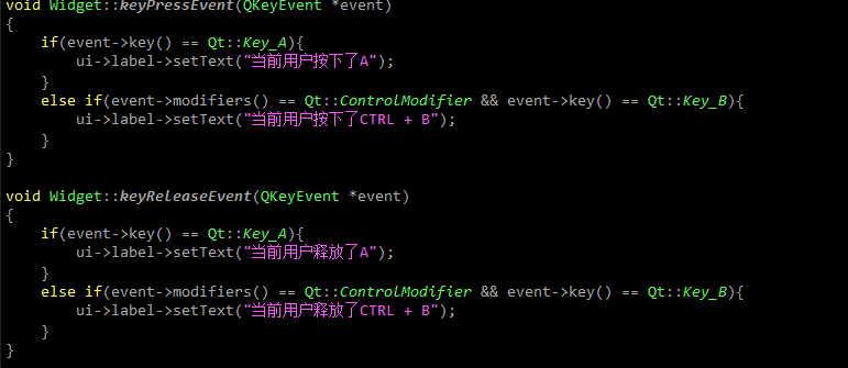 1)重写QKeyPressEvent和QKeyReleaseEvent