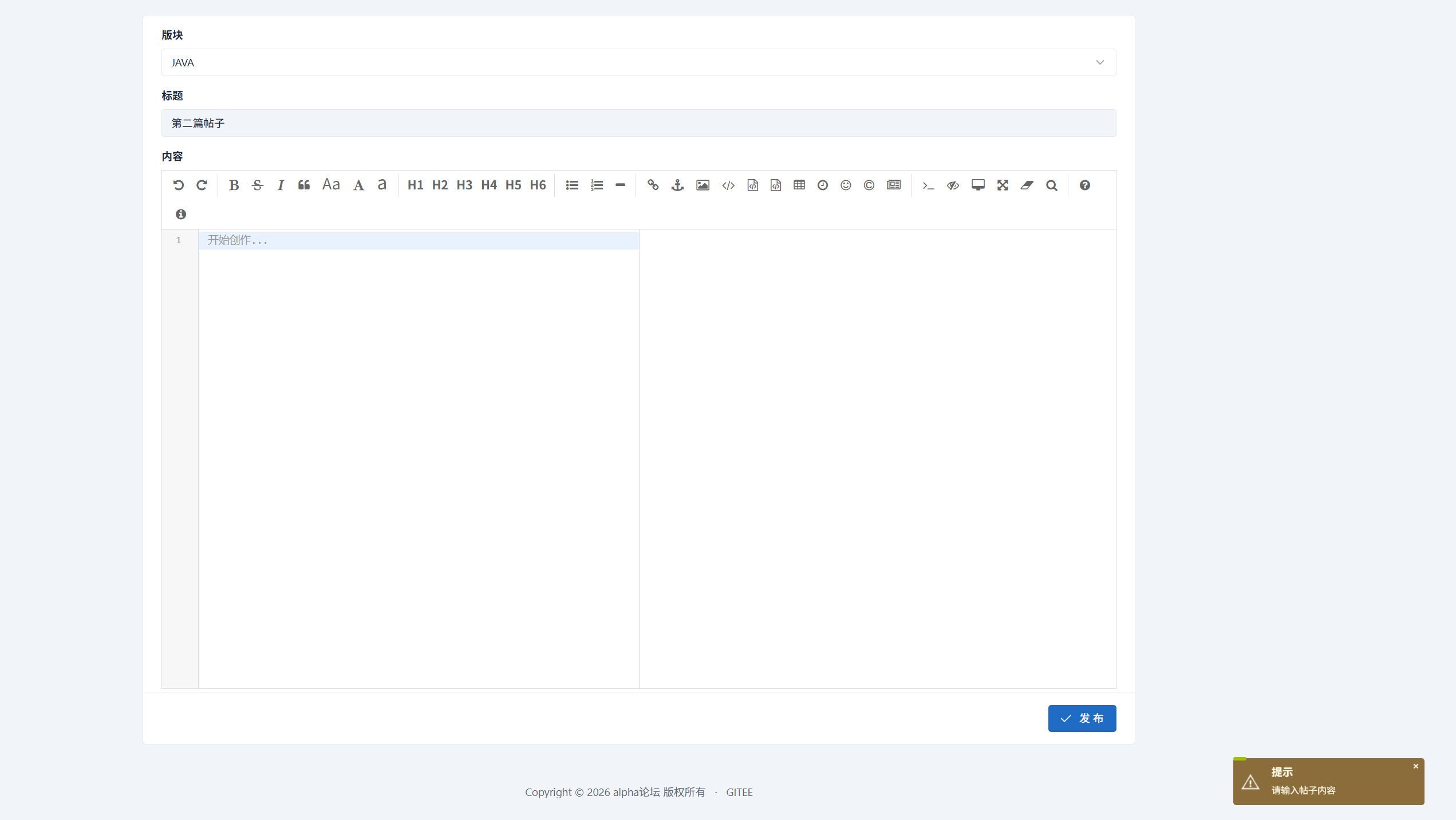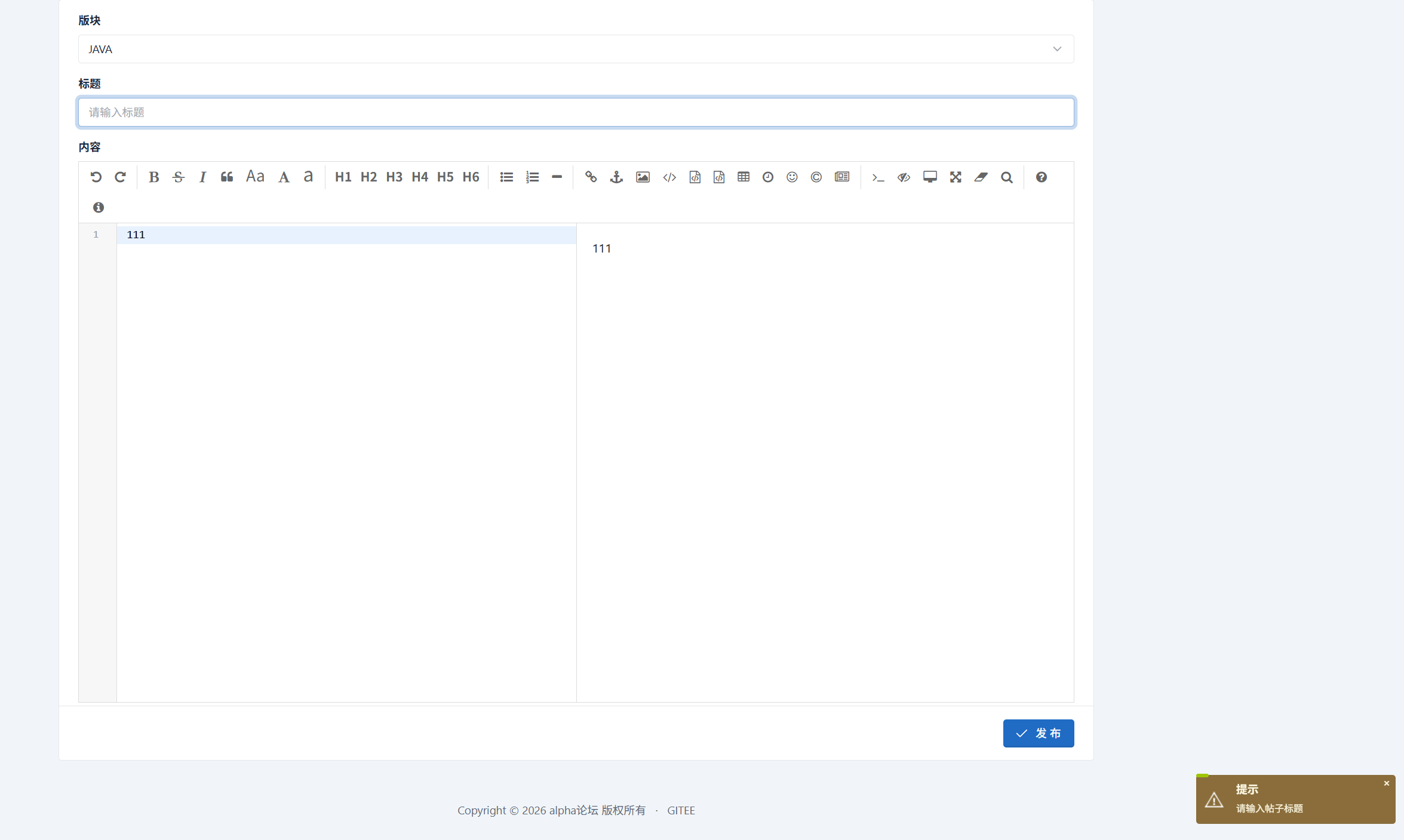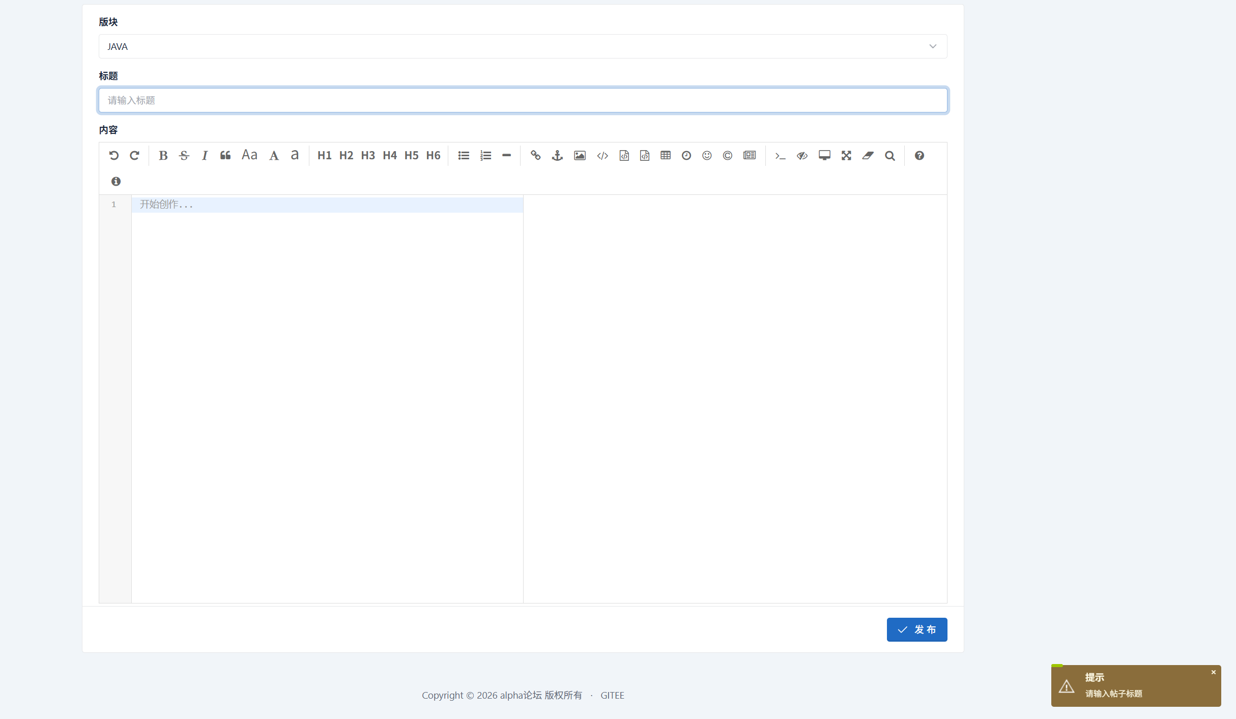 预期:请输入帖子标题