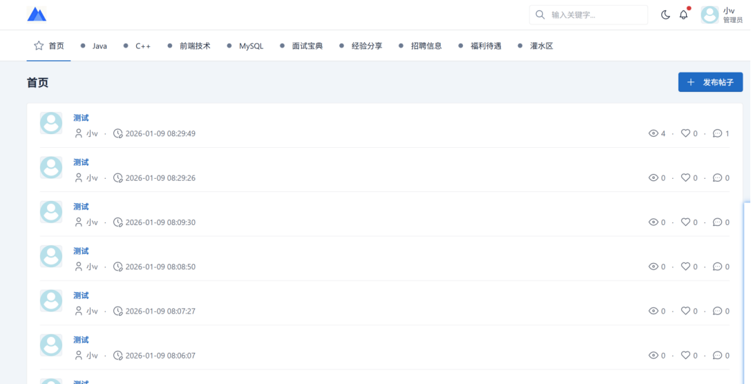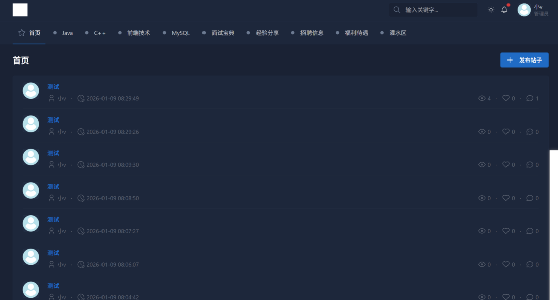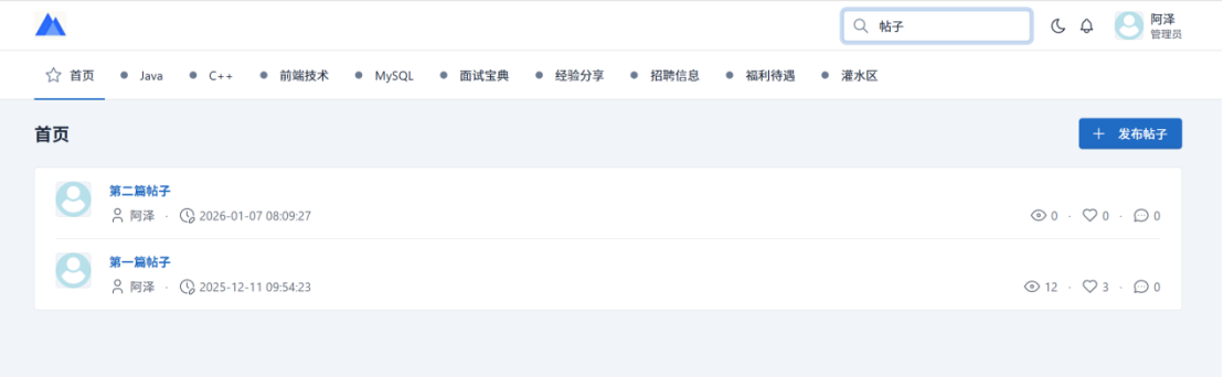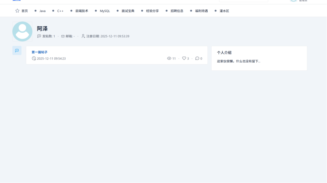 用户可以进行注册登录、查看和修改个人信息,进行帖子的增删改查等基础操作。
