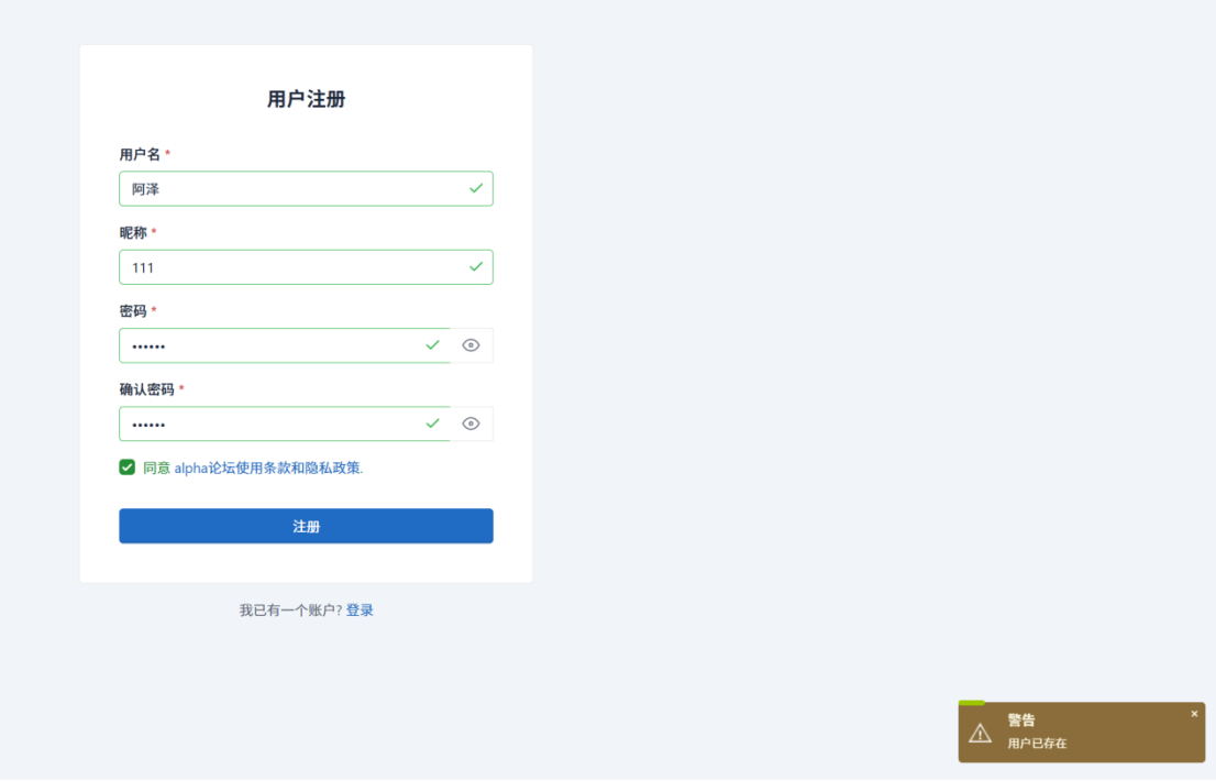 // 用户名已存在