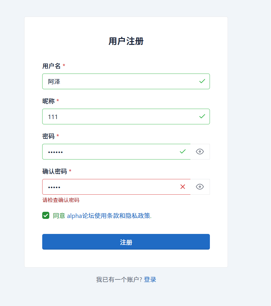 checkNormalRegister("小明","小明","123456","123456");