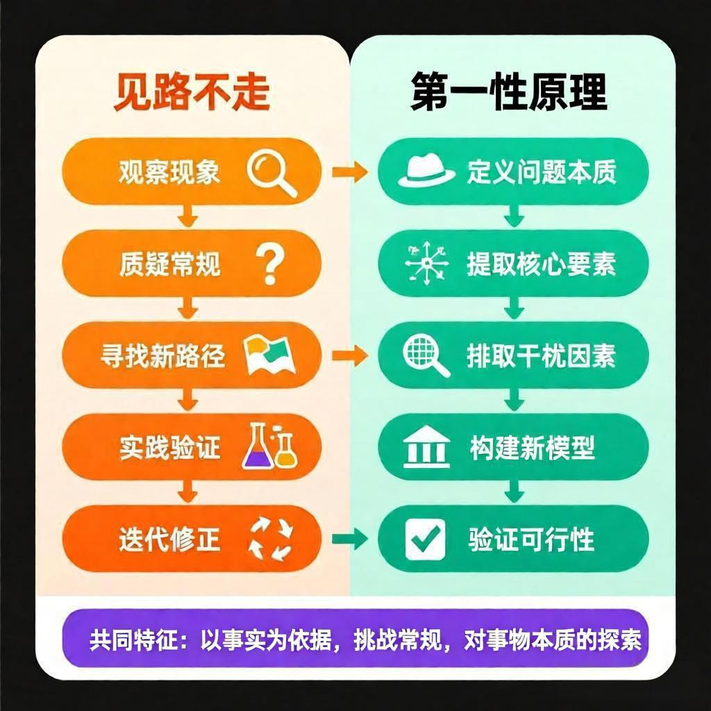 | 维度 | 见路不走 | 第一性原理 | 共同本质 |