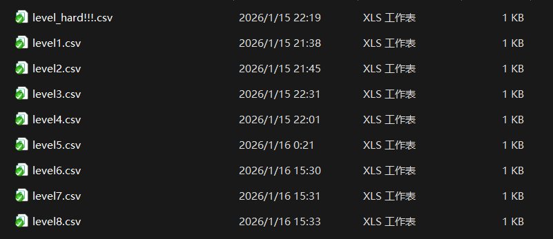 此外,你也可以点击导入按钮,导入对应的关卡(csv文件)。