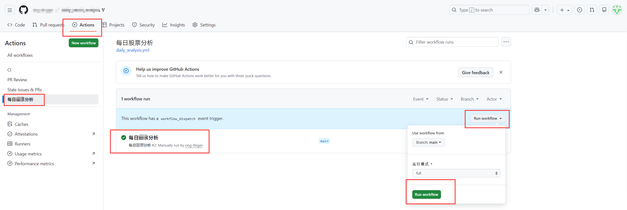 - Actions → 流水线 → Run workflow