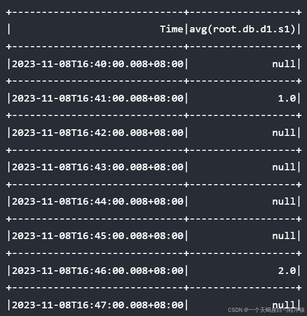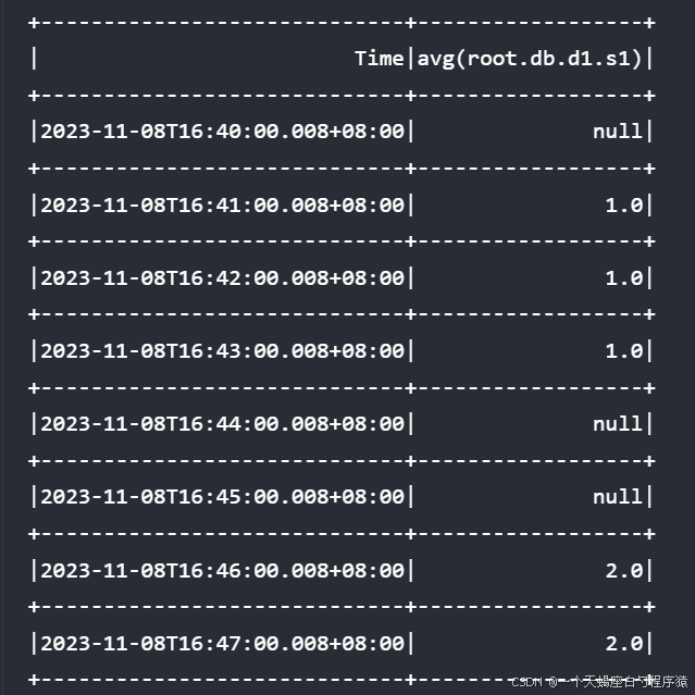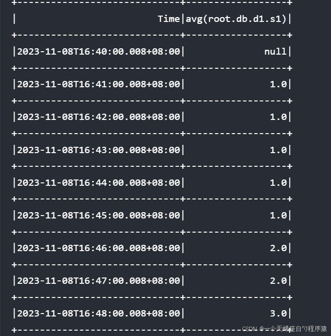 group by([2023-11-08T16:40:00.008+08:00, 2023-11-08T16:50:00.008+08:00), 1m)