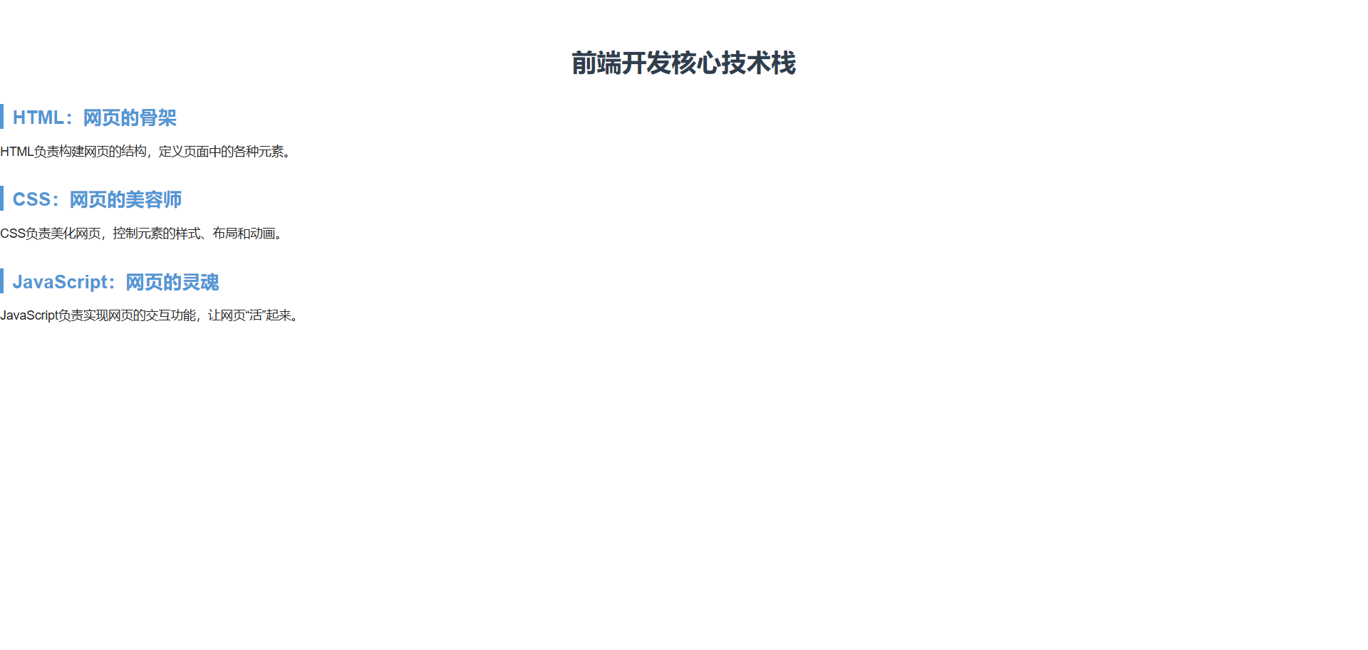 运行上述代码后,浏览器会清晰呈现出层级分明的标题结构,让用户一眼就能看懂页面的内容框架。如下所示: