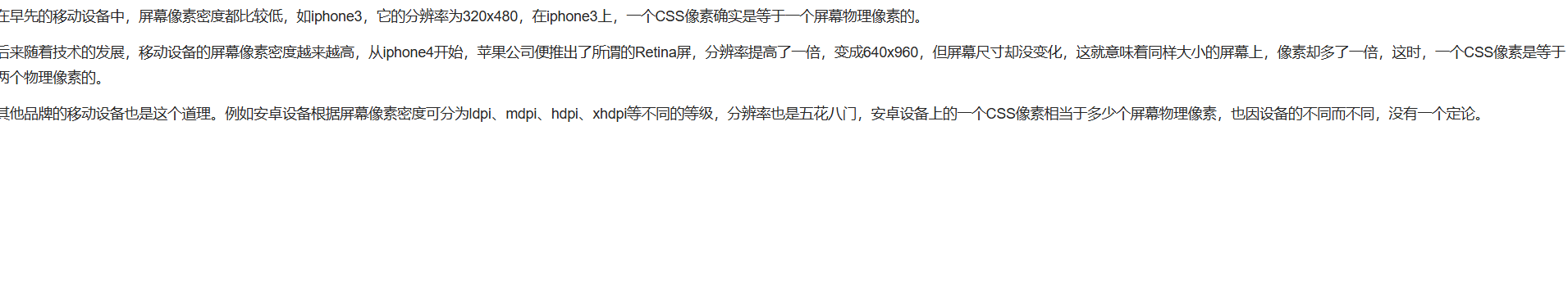 这意味着,在不同品牌、不同型号的移动设备上,1个CSS像素对应的物理像素数量是不固定的,没有统一的标准。