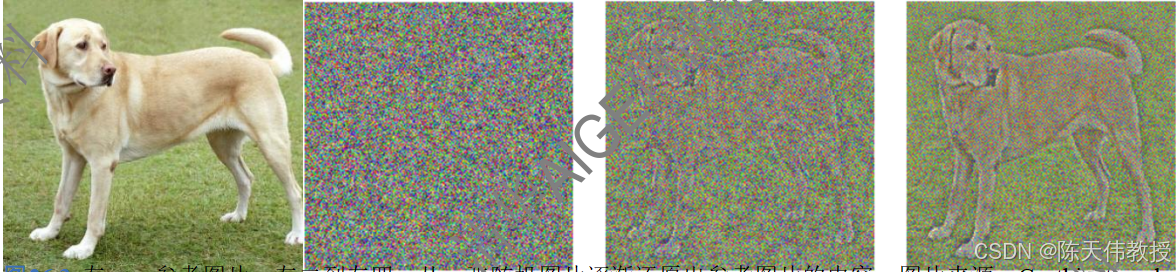 明确了内容和风格在神经网络中的表示方式后,可以采用一种"迭代更新法"来复现任意图片的内容或风格。例如,我们要复现某一参考图片 C 的内容。首先随机初始化一张噪声图片 A ,对该图片逐渐调整,使其在某一卷积层上的激发值 F (A ) 一点点趋近于参考图片在该卷积层上的激发值 F (C )。调整过程一般采用梯度下降算法,损失函数是 F (A ) 和 F (C ) 之间的平方误差,即 ||F (A ) − F (C)||2。下图展示了这一调整过程。