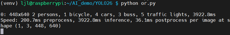 python or.py指令,对图片进行物体识别 - 终端打印识别到的物体、置信度、耗时等信息