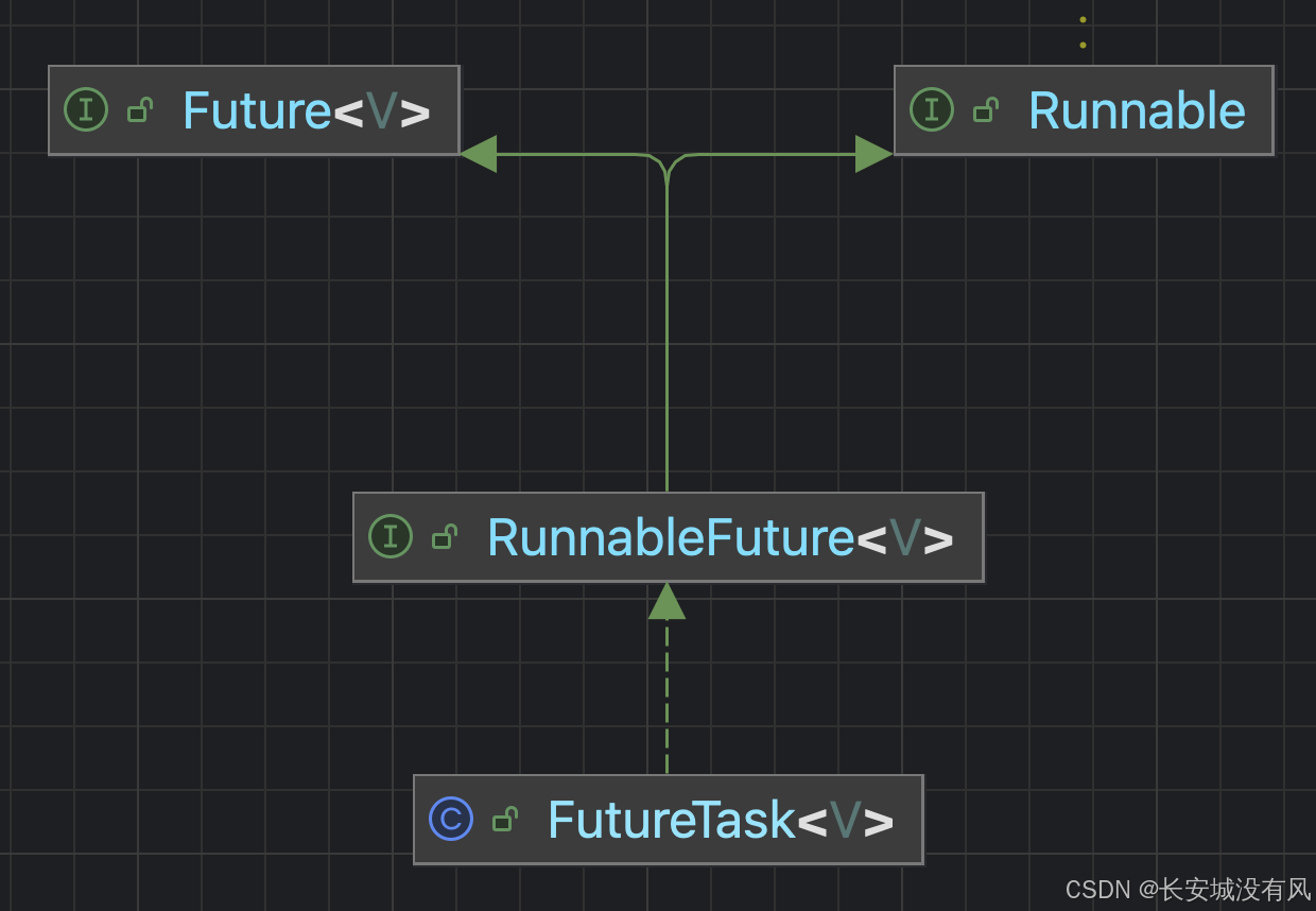 FutureTask 类是 Future 接口的实现类,提供了对异步任务的操作的具体实现。但是,FutureTask 类不仅仅实现了 Future 接口,还实现了 Runnable 接口,准确的说,FutureTask 类实现了 RunnableFuture 接口。